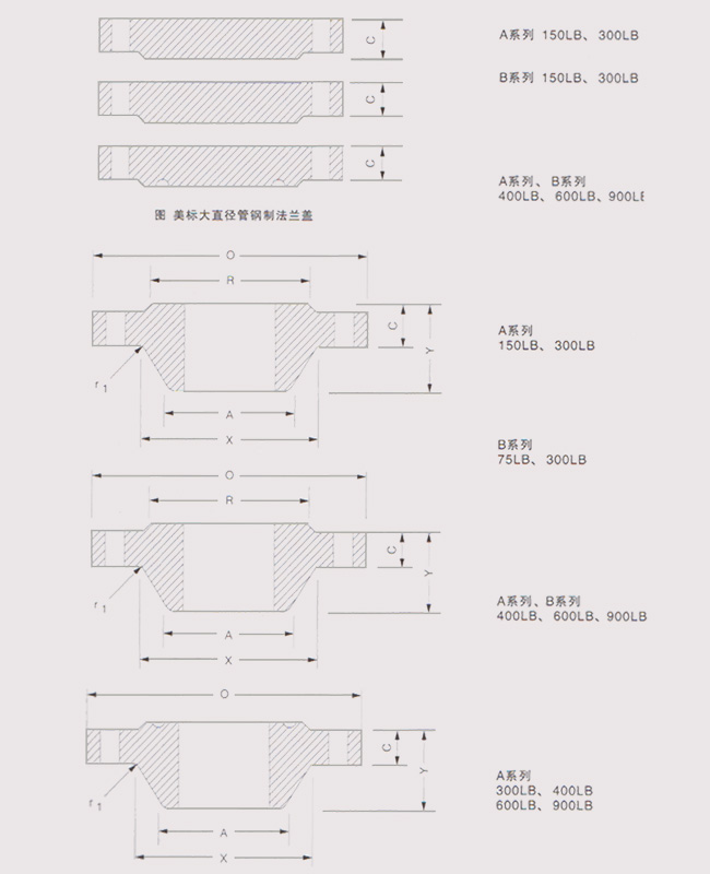 B系列300磅級(jí)法蘭的尺寸(相當(dāng)于API 605)ASME16.47/A-1996(mm)